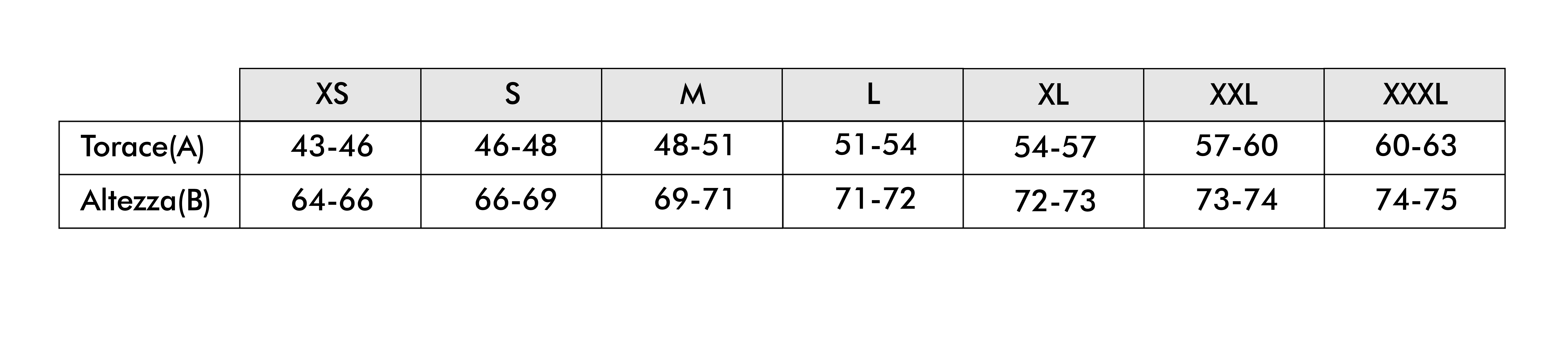 TORACE (A) : esegui la misurazione in corrispondenza del punto più ampio del torace, mantenendo il metro in orizzontale.